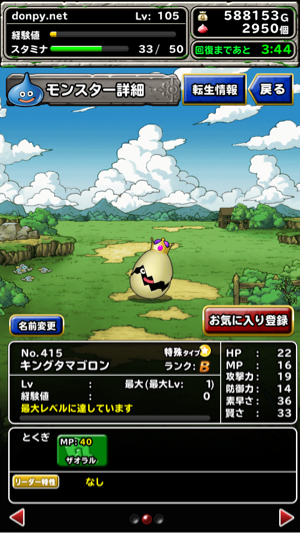 キングタマゴロンは「ザオラル」もちでした。これはレアだ。