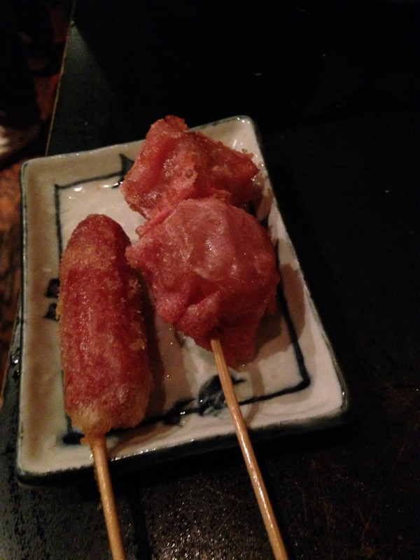 生ビールと鯛にぎりと串カツ2本付きで500円は嬉しいですよね♪