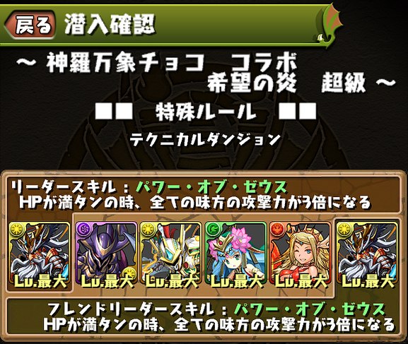【パズドラ】「神羅万象チョココラボ」(超級)に挑戦してみた。